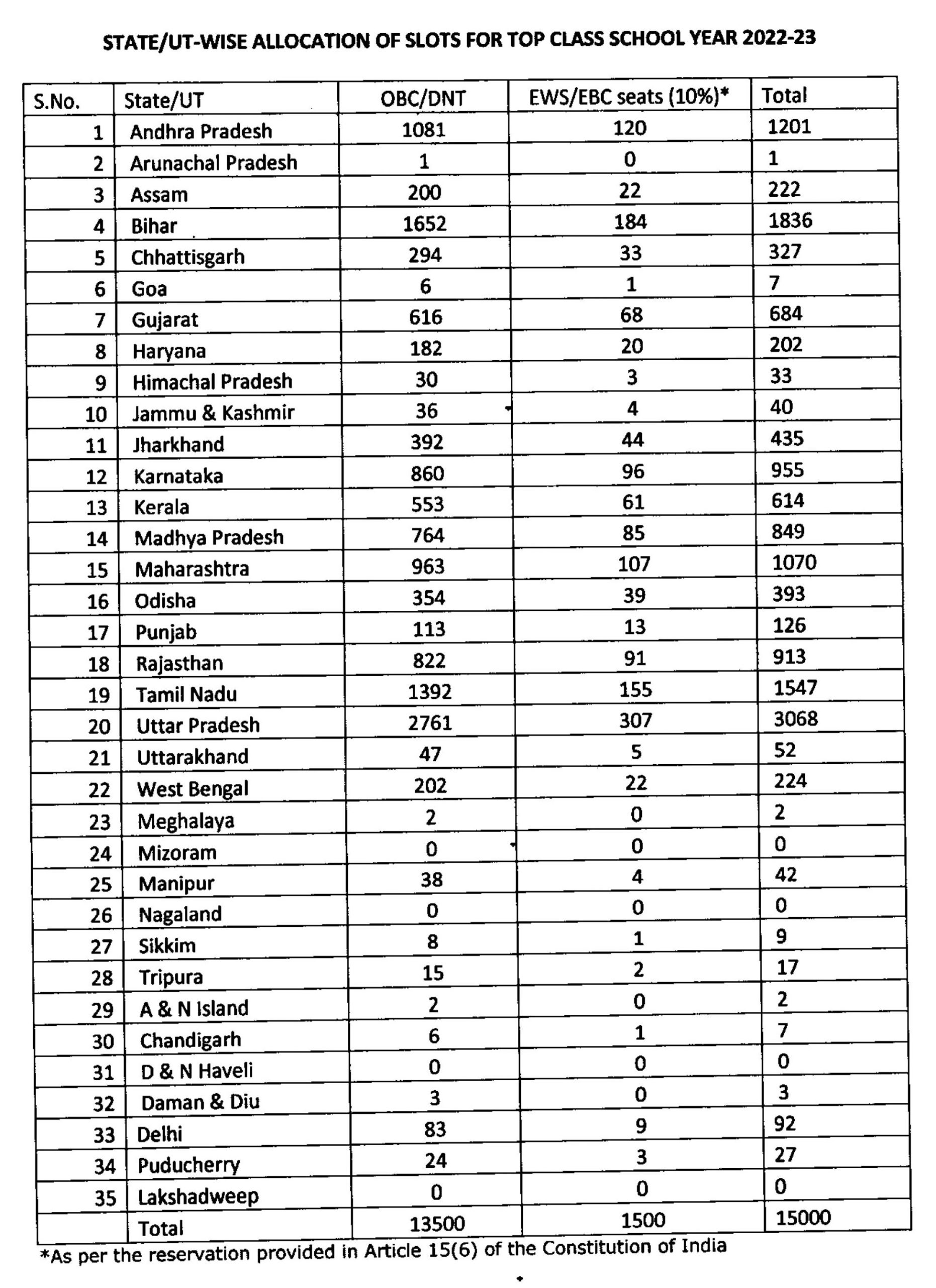 PM Yashasvi Scheme State Wise Allotment of Slots