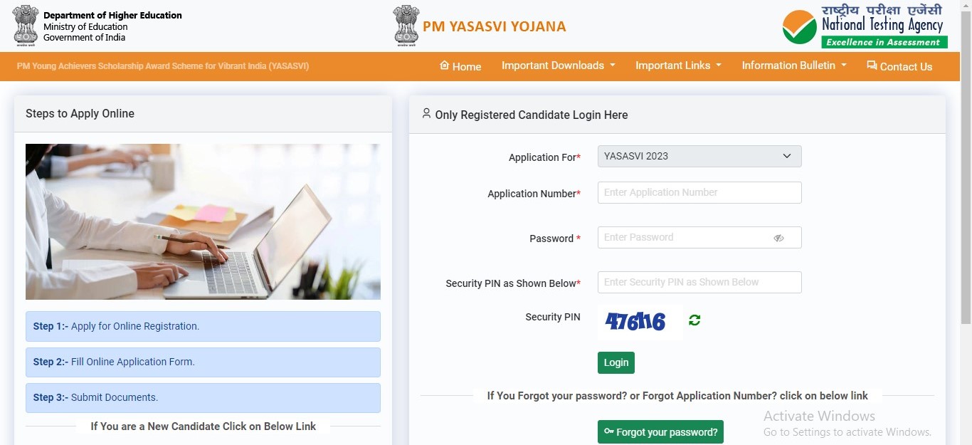 Students who wish to apply for the PM Yashasvi Scheme must follow these steps:
